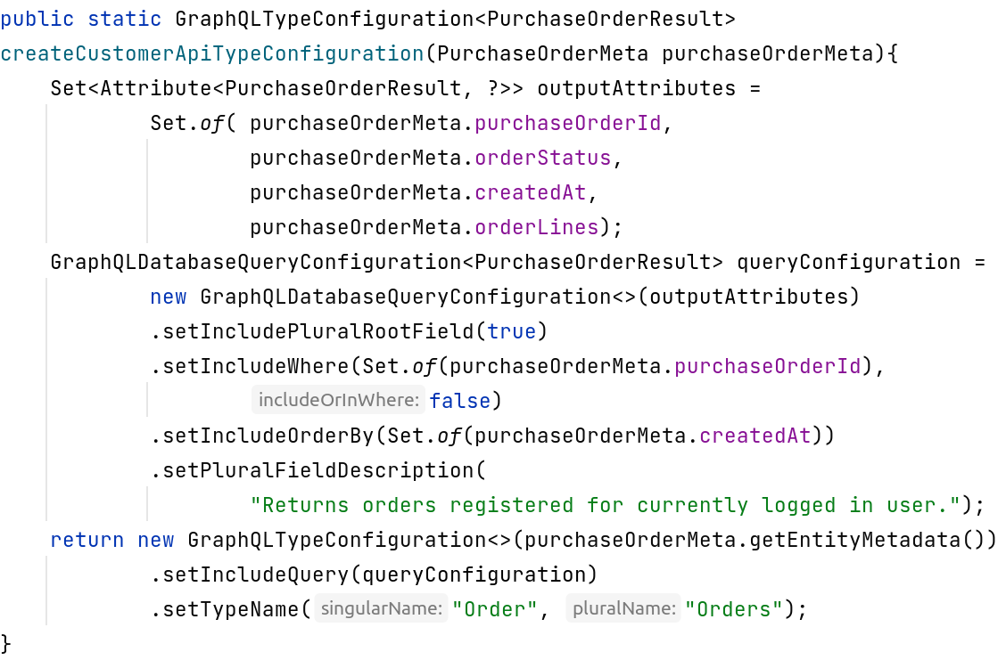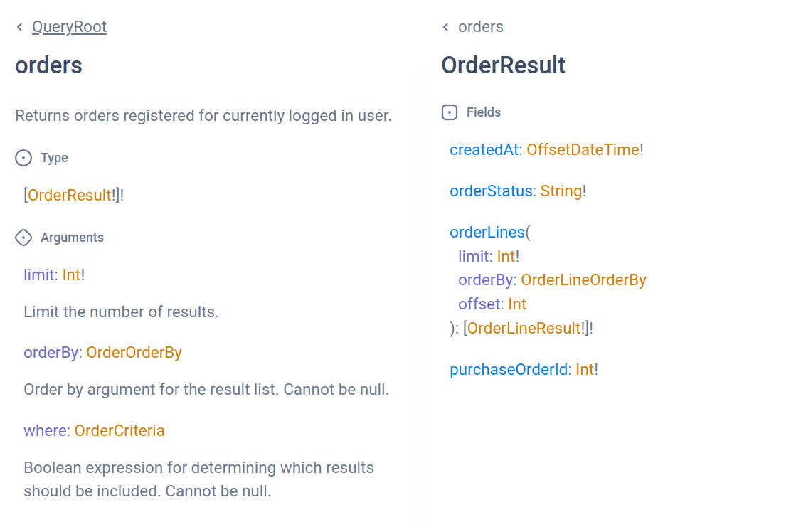 Declare what tables, columns and relations you want to expose, how they are allowed to be ordered and filtered, and how they can be mutated. Fields that do not map directly to database tables can be declared as custom fields.